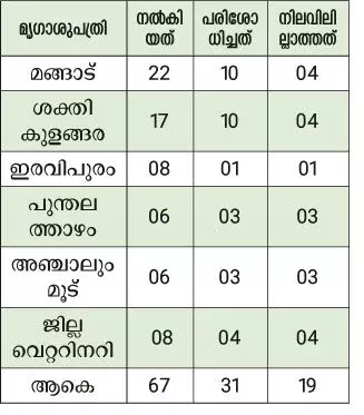 ഓഡിറ്റിന് ഹാജരാക്കിയ രേഖകളുടെ പരിശോധനക്ക് പുറമെ കിടാരികളെ ലഭിച്ച ഗുണഭോക്താക്കളുടെ ഭവനങ്ങൾ മൃഗാശുപത്രി അധികൃതരുടെ സാന്നിധ്യത്തിൽ പരിശോധിച്ചിരുന്നു. അഞ്ച് മൃഗാശുപത്രികളുടെയും ഒരു ജില്ല വെറ്ററിനറി കേന്ദ്രത്തിന്റെയും കീഴിലായി ആകെ നൽകിയ 67 കിടാരികളിൽ 31 എണ്ണം ഓഡിറ്റ് ഭൗതിക പരിശോധന നടത്തിയതിൽ 19 എണ്ണം (ഗുണഭോക്താക്കൾ വിൽക്കുകയോ ചത്തുപോവുകയോ) നിലവിലില്ല. ഈ കണക്ക് പ്രകാരം ഏതാണ്ട് 61 ശതമാനം നഷ്ടപ്പെട്ടു.