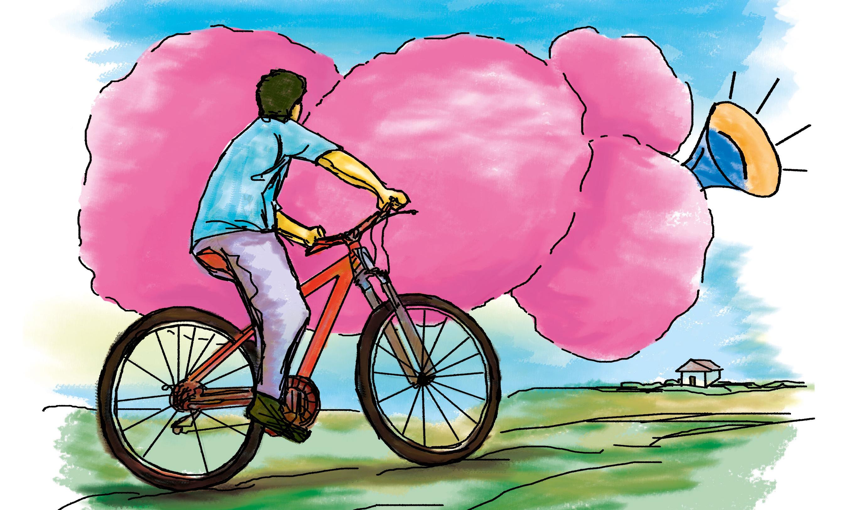 ഞാൻ പേരക്കുട്ടിയുടെ സൈക്കിൾ എടുത്തു. എങ്ങനെയെല്ലാമോ സൈക്കിളിനു മുകളിൽ കയറിപ്പറ്റി. തേയ്മാനം സംഭവിച്ച വേദനിക്കുന്ന കാലുകൾകൊണ്ട് സൈക്കിൾ ആഞ്ഞു ചവിട്ടി: മുന്നിലുള്ള തടസ്സങ്ങളെല്ലാം അവഗണിച്ച് കുത്തനെയുള്ള കയറ്റങ്ങൾ ചവിട്ടിക്കയറ്റി പഞ്ഞിമുട്ടായിക്കാരനെ തേടി കവലയിലെത്തി. എന്നാൽ, അവിടെയൊന്നും അയാളെ കാണാൻ പറ്റിയില്ല. ഞാൻ ഒരു കിതപ്പു കലർന്ന ദീർഘനിശ്വാസത്തോടെ ബ്രേക്ക് ചെയ്തു സൈക്കിൾ ചവിട്ടിനിർത്തി. ചേട്ടന്റെ മകൻ പിറന്നാൾ സമ്മാനമായി തന്ന വെളുത്ത ഷർട്ട്, വിയർപ്പുകൊണ്ട് ആകെ നനഞ്ഞുകുളിച്ചിരുന്നു. കണ്ണുകളിൽനിന്ന് അറിയാതെ കണ്ണീര് എന്തിനോ തുളുമ്പിപ്പോയി. സ്വപ്നത്തിന്റെ ചുവയുള്ള കണ്ണീര് വരണ്ടുണങ്ങിയ മണ്ണിലേക്ക് ആഴ്ന്നിറങ്ങി. പൊടുന്നനെ മേഘങ്ങളിൽനിന്ന് ഒരായിരം മഴത്തുള്ളികൾ കണ്ണീരിന്റെ സങ്കടം കേട്ട് ഭൂമിയെ തണുപ്പിച്ചു.
