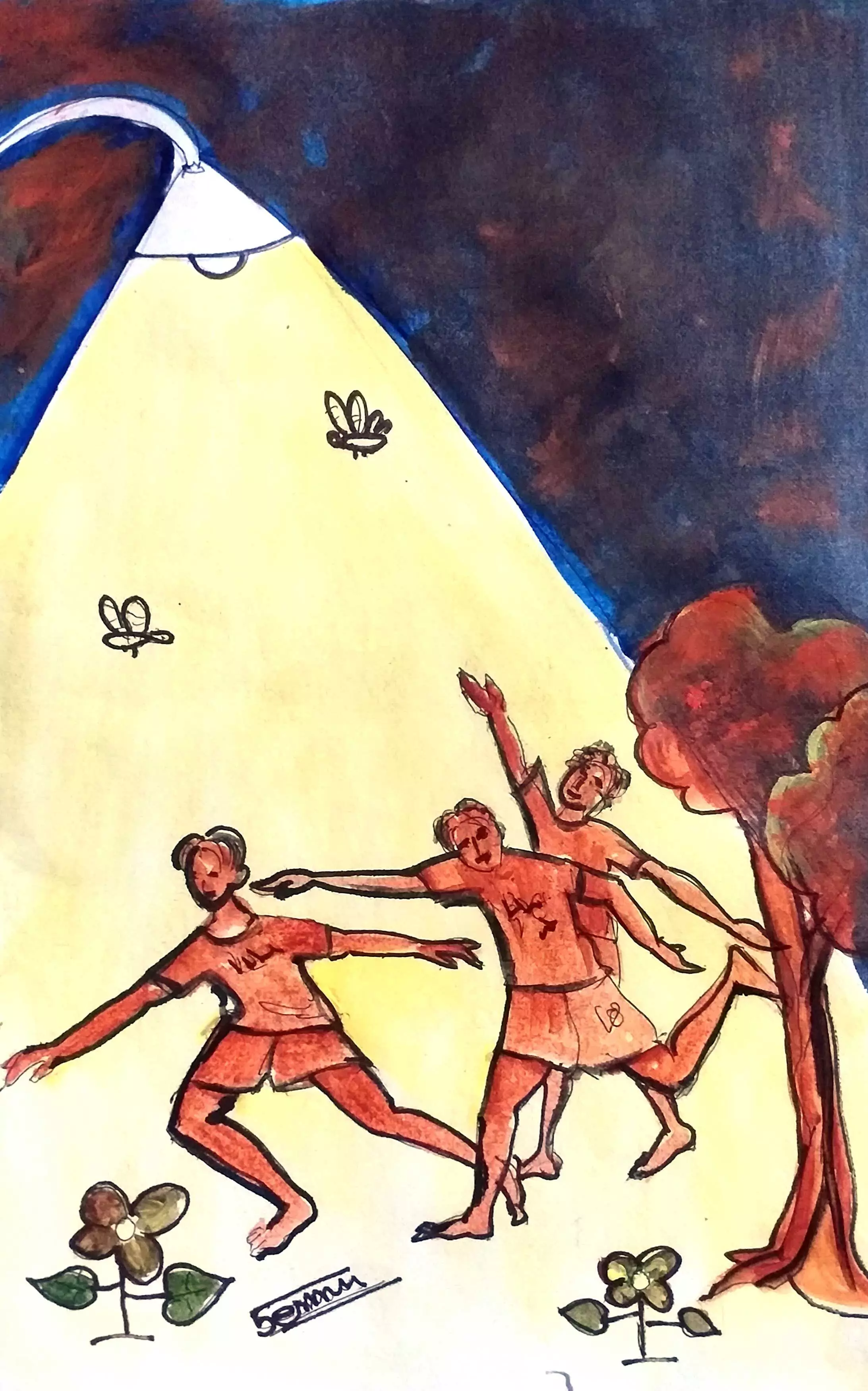 അന്ന് രാത്രി പിള്ളേര് പന്ത് കളിയായിരുന്നു. അവര് മൂന്ന് പേര്ക്കും പുറമെ അങ്ങാടീല് കണ്ട് പരിചയമുള്ള രണ്ട് പേരും കൂടിയുണ്ടായിരുന്നു. സമപ്രായക്കാരാണ്. റോഡിന്റെ മുകള്ഭാഗത്തെ ഹൈമാസ്റ്റ് ലൈറ്റ് രണ്ട് ദിവസമായി കത്തുന്നില്ല. പക്ഷേ, വൈകിയുദിച്ച പിന് നിലാവിന്റെ വെളിച്ചം അവരുടെ തലക്കുമേലെ പരന്നു. ഞാന് താഴെ റോഡിലേക്കിറങ്ങി. മേലെ റോഡരികിലെ വെള്ളച്ചായമടിച്ച പീടിക ചുവരുകള്, പഴയ മേല്ക്കൂരകള് നിലാവില് കുതിരുന്നു. ജങ്ഷനിലേക്ക് പാഞ്ഞുവന്ന ഒരു കോഴിലോറി ഒന്ന് സംശയിച്ച് ബ്രേക്കിട്ട് പിന്നെയും മുന്നോട്ടോടി പെട്ടെന്ന് വലത്തേ റോഡിലേക്ക് വെട്ടിച്ച് പോയി.
