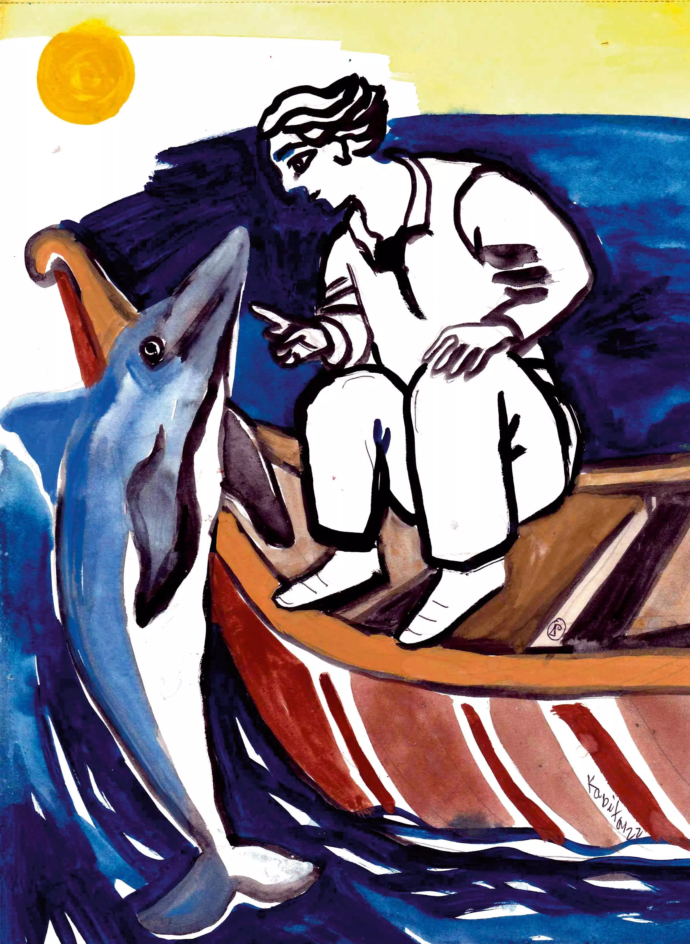 നീലസമുദ്രത്തിലൂടെ തനിയെ ഒരു യാത്ര നടത്തിയതിനെക്കുറിച്ച് ഒരിക്കൽ അയാൾ വിവരിക്കുമ്പോൾ എഴുപത് കിലോമീറ്ററോളം നീളത്തിൽ വെള്ളിനിറമുള്ള ഒരു ഡോൾഫിൻ തന്നെ പിന്തുടർന്നതിനെക്കുറിച്ച് പറയാതിരുന്നില്ല. തന്റെ ചെറിയ വഞ്ചിയുടെ വശങ്ങളിൽ ഇടക്കിടെ ആ ഡോൾഫിൻ ദേഹമുരക്കുമായിരുന്നു എന്നും തെളിഞ്ഞ പൂനിലാവുണ്ടായിരുന്ന ഒരു രാത്രിയിൽ അത് വഞ്ചിക്കുള്ളിലേക്ക് വഴുതിക്കയറിയെന്നും തുഴ താഴ്ത്തിവെച്ച് മലർന്നുകിടന്ന് ഉറങ്ങുകയായിരുന്ന തന്റെ നെഞ്ചിനുമീതെ ഡോൾഫിൻ അമർന്നു കിടന്നെന്നും ഏതോ ജലകന്യകയോടൊപ്പം സഹശയനം നടത്തിയതിന്റെ സുഖത്തിലും നിർവൃതിയിലുമാണ് പിന്നീട് താനുണർന്നതെന്നും അയാൾ പറഞ്ഞപ്പോൾ ആരും വിശ്വസിച്ചില്ല. അയാളത് തെളിയിക്കാനുള്ള നടപടികളൊന്നും നടത്തിയതുമില്ല.