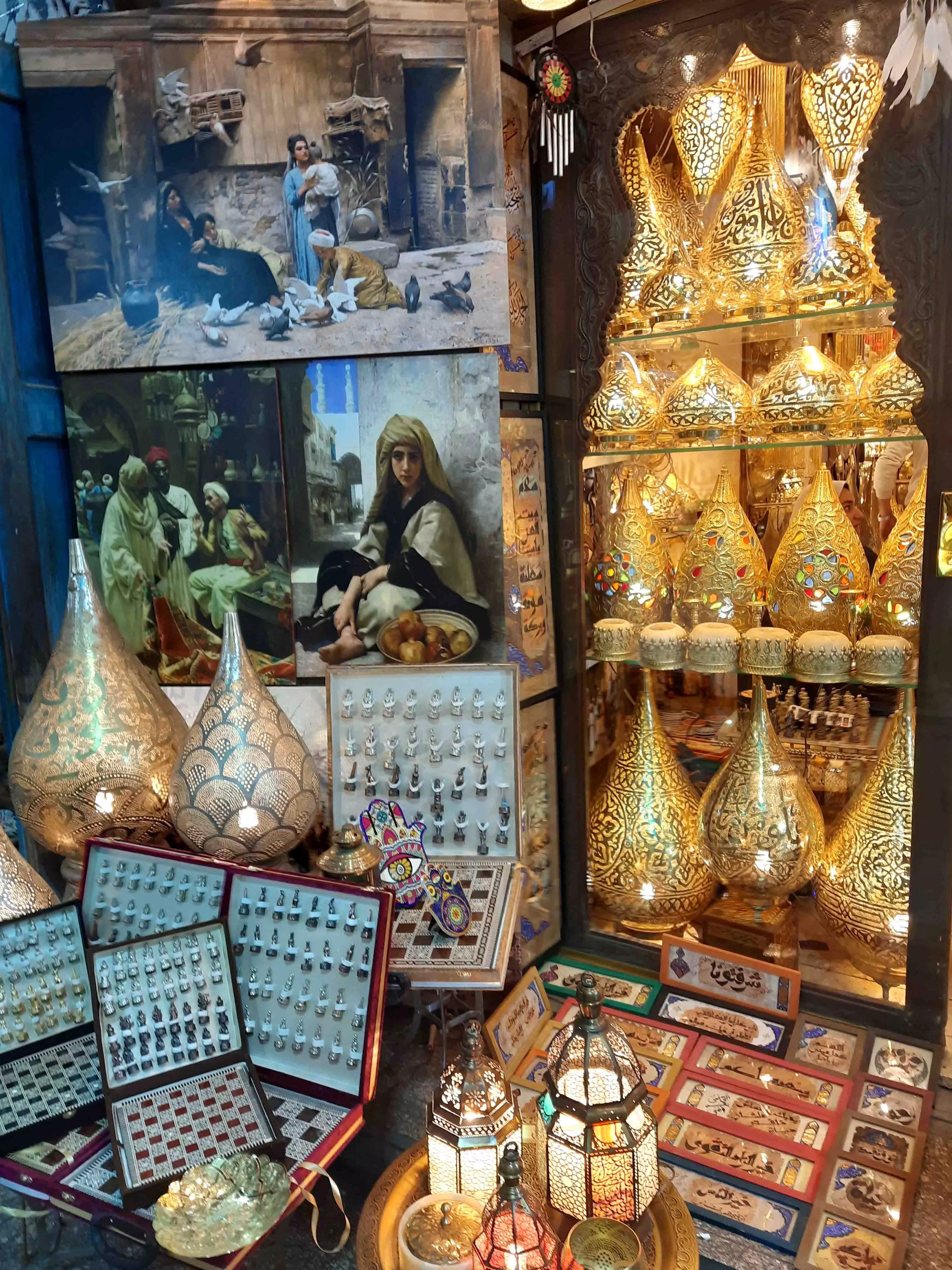 ഖലീലിലെ കച്ചവടക്കാർക്കൊക്കെ മുറി ഇംഗ്ലീഷെങ്കിലും അറിയാം. ഇന്ത്യക്കാരെ കണ്ടാൽ പറയാൻ ചില്ലറ ഹിന്ദി വാക്കുകളും അവരുടെ പക്കലുണ്ട്. അതുവെച്ച് അവർ കടയിലേക്ക് ക്ഷണിക്കും. അറേബ്യൻ വസ്ത്രങ്ങളും ബാഗുകളുമൊക്കെ വിൽക്കുന്ന കടകളിലുള്ളവർ കോഴിക്കോട്ടെ മിഠായിത്തെരുവിലെ താളത്തിൽ വിളിച്ചുപറഞ്ഞ് ആളെക്കൂട്ടുന്ന കച്ചവടക്കാരെ ഓർമിപ്പിക്കും. ഈജിപ്തിൽനിന്ന് മടങ്ങുന്ന സഞ്ചാരികൾക്ക് കൊണ്ടുപോവാനുള്ള സുവനീറുകളും സമ്മാനങ്ങളുമാണ് ചില കടകളിൽ. പിരമിഡിന്റെയും തുത്തൻഖാമന്റെയും സ്ഫിങ്സിന്റെയുമൊക്കെ കൊച്ചുരൂപങ്ങൾ. ഹൈറോഗ്ലിഫിക് ലിപി രേഖപ്പെടുത്തിയ പലതരം സാധനങ്ങൾ, പഴയകാലജീവിതം രേഖപ്പെടുത്തിയ പെയിന്റിങ്ങുകളും ഫോട്ടോകളും, പാപ്പിറസ് ചുരുളുകൾ - യാത്ര ഓർത്തുവെക്കാൻ ഏതെടുക്കണമെന്ന സന്ദേഹം മാത്രമേ അവിടെ സഞ്ചാരിക്കുള്ളൂ. ഖാൻ അൽ ഖലീലിലെ ഏറ്റവും മനോഹരമായ ഒരു ഫ്രെയിം, അതിന്റെ എല്ലാ ശിൽപചാതുരിയും ഒറ്റനോട്ടത്തിൽ കാണാവുന്ന പോയന്റാണ് ബാബ് അൽ ഗോറി. അവിടന്ന് പടികളിറങ്ങി വേണം അപ്പുറത്തെത്താൻ. അവിടെയാണ് ഉമ്മ് ഖാൽത്തൂൻ കോഫി ഷോപ്.