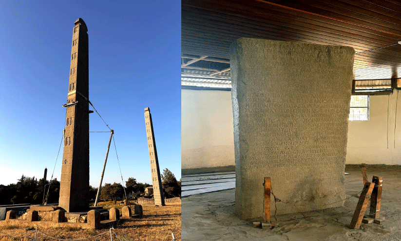 1935ൽ മുസോളിനിയുടെ ഇറ്റാലിയൻ സൈന്യം ഇത്യോപ്യ പിടിച്ചടക്കിയപ്പോൾ കടത്തിയ സ്തൂപം,ഈസാന രാജാവ് സ്ഥാപിച്ച സ്തൂപം