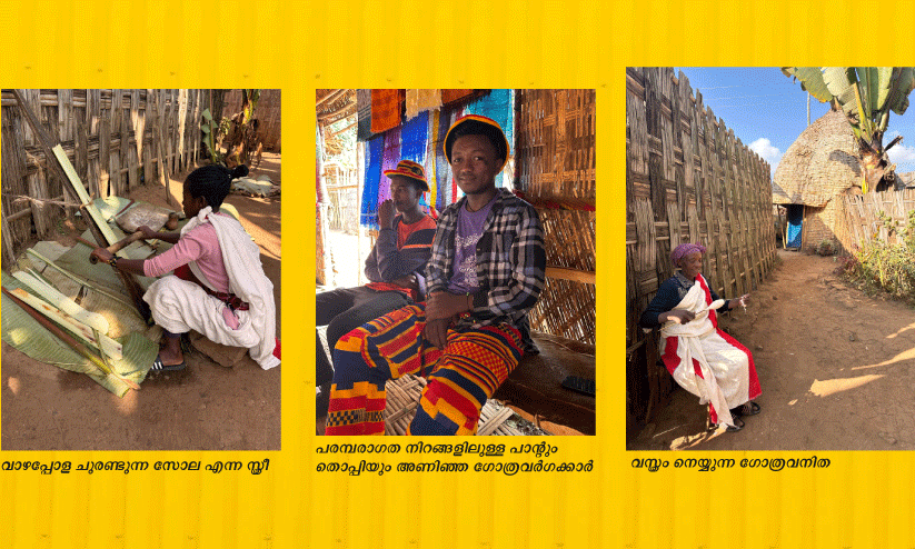 മെസാറ്റ് എന്നെ ഇറക്കിയത് അത്തരം കുറച്ചു കുടിലുകൾക്ക് മുന്നിലാണ്. അവന്റെ സുഹൃത്ത് നെഗാറ്റോ വഴിയരികിൽ ഞങ്ങളെ സ്വീകരിക്കാൻ നിന്നു. ചുവപ്പ്, കറുപ്പ്, മഞ്ഞ നിറത്തിലെ വിചിത്ര ഡിസൈനുള്ള പാന്റും തൊപ്പിയുമാണ് അവന്റെ വേഷം. ഡോർസെ ഗോത്രക്കാർ അറിയപ്പെടുന്ന നെയ്ത്തുകാരാണ്. അവരുടെ പരമ്പരാഗത വസ്ത്രങ്ങളിലെ നിറങ്ങൾക്കും അർഥങ്ങളുണ്ട്; കറുപ്പ് അവരുടെ തൊലിയുടെ നിറത്തെയും ചുവപ്പ് രക്തത്തെയും മഞ്ഞ സൂര്യനെയുമാണ് സൂചിപ്പിക്കുന്നത്.