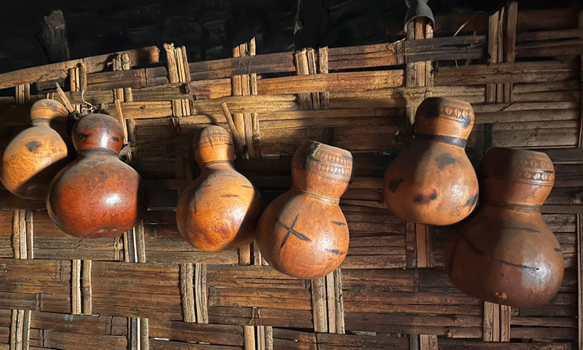 മുളം ചീളുകൾ നെയ്തുണ്ടാക്കിയ വേലി അതിമനോഹരമാണ്. ഏഴ് നീളമുള്ള ചീളുകൾ ഒന്നിച്ച് നെടുകയും കുറുകയും വെച്ചാണ് നെയ്തെടുത്തിരിക്കുന്നത്. പറമ്പിലേക്ക് പ്രവേശിച്ചതും നെഗാറ്റോയുടെ അമ്മ അർഗയും സഹോദരി സോളയുംകൂടി എനിക്ക് കതിര് തന്നു സ്വീകരിച്ചു. നെഗാറ്റോയും സഹോദരനും പുലിത്തോൽ കൊണ്ടുള്ള ഉടുപ്പും ധരിച്ചു വന്നു. അവരുടെ കൈയിൽ കുന്തവും പരിചയുമുണ്ട്. അവർ പണ്ട് യോദ്ധാക്കളായിരുന്നു എന്നതിന്റെ ഓർമപ്പെടുത്തലാണത്.