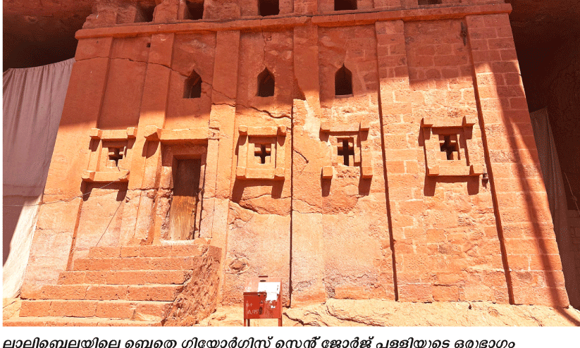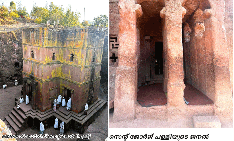 നേരം വെളുത്തു തുടങ്ങിയപ്പോൾ ഞങ്ങൾ അവിടന്നിറങ്ങി. ഞങ്ങളുടെ അടുത്ത ലക്ഷ്യമായ ബെതെ ഗിയോർഗിസ് എന്ന സെന്റ് ജോർജ് പള്ളിയിലെത്തി. വലിയൊരു പാറ. അതിൽ കിണറുപോലെയൊരു ഗർത്തം. അതിനകത്തു പള്ളി. കുരിശിന്റെ ആകൃതിയിൽ നിർമിച്ചിരിക്കുന്ന ദേവാലയത്തിന്റെ മുകൾഭാഗം മാത്രമാണ് അവിടെ നിന്നാൽ കാണാനാകുക. പാറകൾക്കിടയിൽനിന്ന് കുരിശു പൊന്തിവന്നതായി തോന്നിക്കും. എങ്ങനെ ആ കാലഘട്ടത്തിൽ യന്ത്രങ്ങളോ ആധുനിക ഉപകരണങ്ങളോ ഇല്ലാതെ ഇത്ര കൃത്യമായി കൊത്തിയെടുത്തുവെന്നത് വിസ്മയിപ്പിച്ചു. ലാലിബെല്ല പള്ളികളിൽ വെച്ചു ഏറ്റവും അധികം ഫോട്ടോ എടുക്കപ്പെട്ടിട്ടുള്ളത് ഈ പള്ളിയുടേതാണ്. ഞാൻ ചുറ്റുമുള്ള കാടുകളിൽകൂടി കണ്ണോടിച്ചു. ഉറുമ്പ് നിരനിരയായി വരുന്നപോലെ, കാട്ടുവഴികളിൽകൂടി വിശ്വാസികൾ പള്ളിയിലേക്ക് എത്തുന്ന മനോഹരമായ കാഴ്ച.