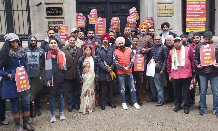 ന്യൂയോർക് ഇന്ത്യൻ കോൺസുലേറ്റിന് മുമ്പിൽ ഇന്ത്യൻ ഓവർസീസ് കോൺഗ്രസ് യു.എസ്.എയുടെ ആഭിമുഖ്യത്തിൽ ‘ഭാരത് ബചാവോ’ എന്ന മുദ്രാവാക്യമുയർത്തി നടത്തിയ പ്രതിഷേധ ധർണയിൽ കെ.എം.സി.സി അടക്കമുള്ള സംഘനകളുടെ പങ്കാളിത്തമുണ്ടായി. ‘മതേരര ഇന്ത്യയെ രക്ഷിക്കൂ, എൻ.ആർ.സി വേണ്ട, സി.എ.ബി വേണ്ട’ എന്നെഴുതിയ പ്ലക്കാർഡുകൾ പിടിച്ചുകൊണ്ടായിരുന്നു പ്രതിഷേധം.