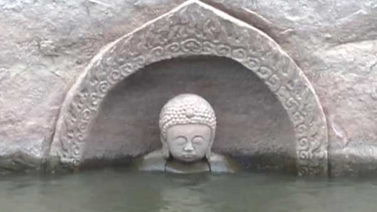 ജലനിരപ്പ് പത്തു മീറ്ററോളം താഴ്ന്നപ്പോള് ഒരു ഗ്രാമീണനാണ് ബുദ്ധ പ്രതിമ ആദ്യം കണ്ടത്. ഒരു പാറമുകളില് ഇരുന്ന് ജലാശയത്തിലേക്ക് നോക്കുന്ന രീതിയിലാണ് ഈ പ്രതിമ. ബുദ്ധ പ്രതിമ പ്രത്യക്ഷമായത് നല്ല ലക്ഷണമാണെന്ന് കരുതി ഇവിടെ സന്ദർശകർ ഏറിയിട്ടുണ്ട്.
