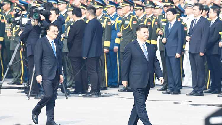 1949 ഒക്ടോബർ ഒന്നിന് കമ്യൂണിസ്റ്റ് സ്ഥാപക നേതാവ് മാവോ സെ തുങ് പീപ്ൾസ് റിപ്പബ്ലിക് ഓഫ് ചൈനയുടെ പ്രഖ്യാപനം നടത്തിയ വേദിയിലാണ് 70 വർഷങ്ങൾക്ക് ശേഷം ഷി പ്രസംഗിച്ചത്. ഒരുലക്ഷം സൈനികര് അണിനിരന്ന പരേഡില് ടാങ്കുകളും കവചിത വാഹനങ്ങളും തദ്ദേശീയമായി വികസിപ്പിച്ച സൂപ്പര്സോണിക് ഡ്രോണുകളും ചൈന പ്രദര്ശിപ്പിച്ചു.