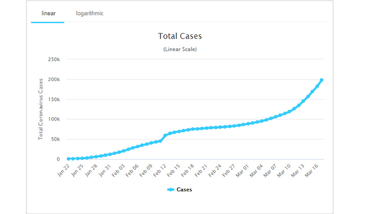 text_fieldsബെയ്ജിങ്: ലോകത്ത് കോവിഡ് 19 ബാധിച്ചവരുടെ എണ്ണം 1,98,602 ആയി. 7,988 പേരാണ് വൈറസ് ബാധിച്ച് മരിച്ചത്. പടർന്നു പടി ക്കുന്ന ഭീതിക്കിടയിലും 82,779 പേർ രോഗമുക്തി നേടിയെന്നതും ആശാവഹമാണ്.