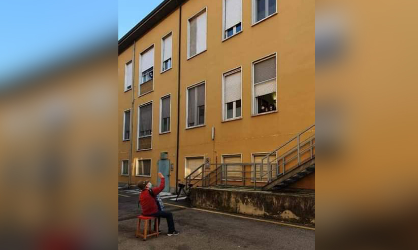 ബോസിനി ഇങ്ങനെ ചെയ്തതിനൊരു കാരണമുണ്ട്. കാസ്ൽ സാൻ ജിയോവന്നിയിലെ ആശുപത്രിയിൽ കാൻസർ ബാധിച്ച് ചികിൽസയിലാണ് കാർല. പക്ഷേ, കോവിഡ് മാർഗനിർദേശ പ്രകാരം ബോസിനിക്ക് ആശുപത്രിയിൽ കയറി ഭാര്യയെ കാണാൻ അനുവാദമില്ല. അതുകൊണ്ട് ഭാര്യയെ കാണാനാണ് കാർലയുടെ മുറിയുടെ താഴെ ബോസിനി എത്തിയത്.