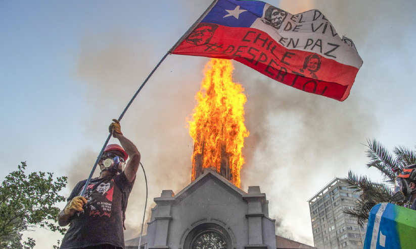 ചിലിയിൽ പ്രതിഷേധം അക്രമാസക്തമായി; ദേവാലയങ്ങൾക്ക് തീയിട്ടു