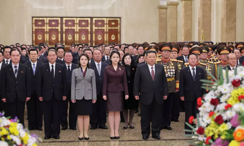 text_fieldsപുതുവർഷ ചടങ്ങിൽ പങ്കെടുക്കാനെത്തിയ ഉത്തരകൊറിയന് ഭരണാധികാരി കിം ജോങ് ഉന്, ഭാര്യ റി സോൾ ജു, മകൾ കിം ജു അയി മധ്യത്തിൽ
