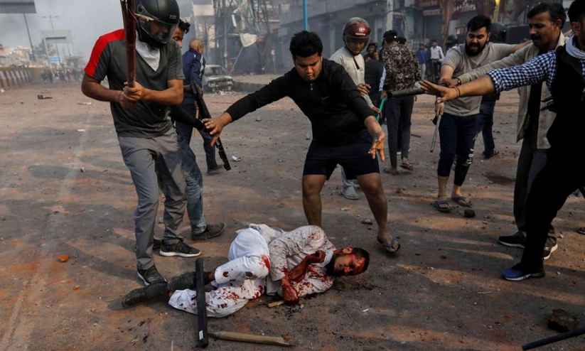 പൗരത്വപ്രക്ഷോഭത്തിനിടെ സംഘ്പരിവാറുകാർ മുസ്ലിംയുവാവിനെ വളഞ്ഞിട്ട് മർദിക്കുന്നു. ഡൽഹി കലാപത്തിനിടെ ഡാനിഷ് സിദ്ദിഖി പകർത്തിയ ദൃശ്യം