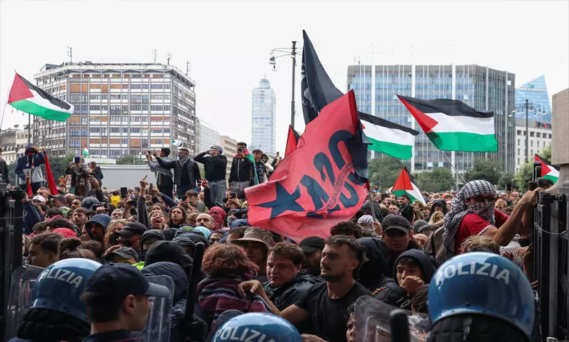 ഗസ്സയിലെ ഇസ്രായേൽ വംശഹത്യക്കെതിരെ ഇറ്റലിയിൽ വൻ പ്രതിഷേധം; റോഡ്, റെയിൽ ഗതാഗതം തടഞ്ഞു, സ്കൂളുകളും അടച്ചു