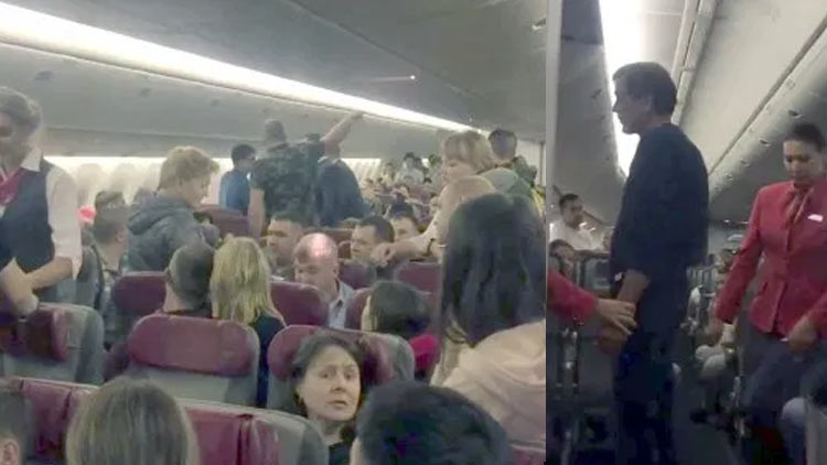 വിമാനത്തിൽ മദ്യപരുടെ വിളയാട്ടം; വാതിൽ തുറക്കാൻ ശ്രമിച്ചയാളെ പിടിച്ചു കെട്ടി