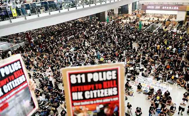 5000ത്തിലേറെ പ്രതിഷേധക്കാരാണ് വിമാനത്താവളത്തിലും പരിസരത്തുമായി ഒത്തുചേര്ന്നിരിക്കുന്നത്. ഹോങ്കോങ് സുരക്ഷിതമല്ലെന്നുള്ള പ്ലക്കാര്ഡുകള് കൈയിലേന്തിയാണ് പ്രതിഷേധക്കാര് സംഘടിച്ചിരിക്കുന്നത്. കഴിഞ്ഞ മൂന്നു ദിവസമായി ഹോങ്കോങ്ങിൽ തുടർച്ചയായി പ്രതിഷേധം നടന്നുകൊണ്ടിരിക്കയാണ്.