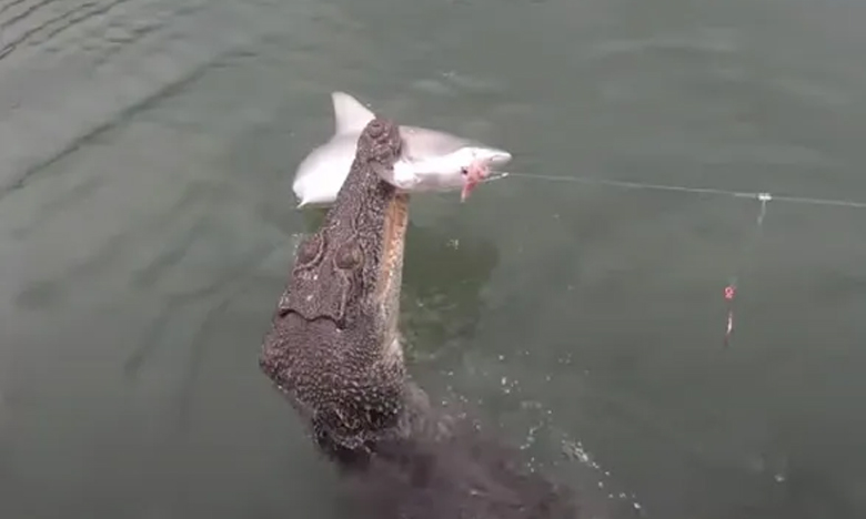 ചൂണ്ടയിൽ കുരുങ്ങിയ സ്രാവിനെ മുതല തട്ടിയെടുക്കുന്ന ദൃശ്യം സമൂഹ മാധ്യമങ്ങളിൽ വൈറലായിട്ടുണ്ട്.