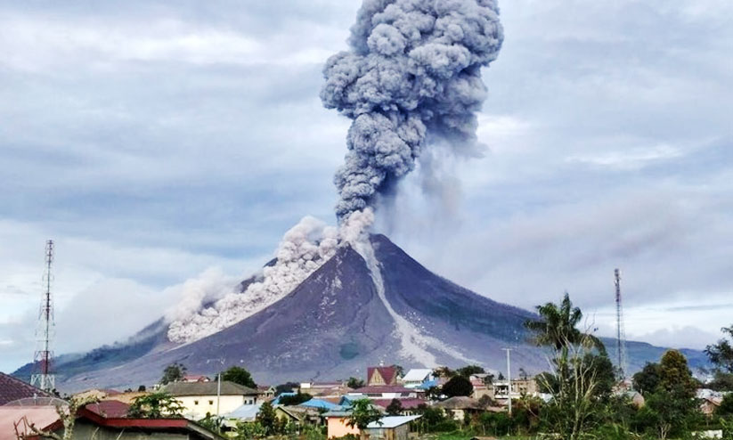 ഇന്തോനേഷ്യയിലെ മൗണ്ട് സിനബംഗ് അഗ്നിപർവ്വതം പൊട്ടിത്തെറിച്ചു