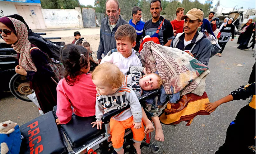 text_fieldsഗസ്സ സിറ്റിയിൽനിന്ന് കാൽനടയായും ഉന്തുവണ്ടിയിലും കിലോമീറ്ററുകൾ താണ്ടി തെക്കൻ ഗസ്സയിലെത്തിയ ഫലസ്തീനി കുടുംബങ്ങളിലെ കുട്ടികൾ തളർന്നുകരയുന്നു