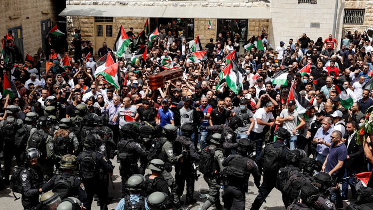 ശിറീൻ അബു ആഖിലയുടെ മൃതദേഹം വഹിച്ചുള്ള വിലാപയാത്രക്ക് നേരെ ഇസ്രായേൽ അതിക്രമം -വിഡിയോ