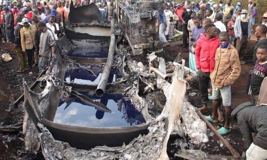 മറിഞ്ഞ ടാങ്കറിൽനിന്ന് എണ്ണയൂറ്റുന്നതിനിടെ തീഗോളമായി; 13 പേർ വെന്തുമരിച്ചു
