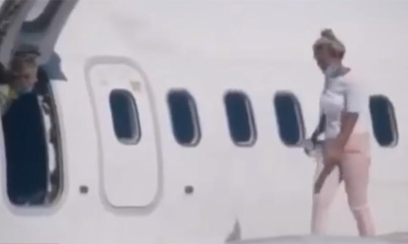 വിമാനത്തിനകത്ത് ചൂട്; കാറ്റുകൊള്ളാൻ ചിറകിലേക്കിറങ്ങി നടന്ന് യുവതി