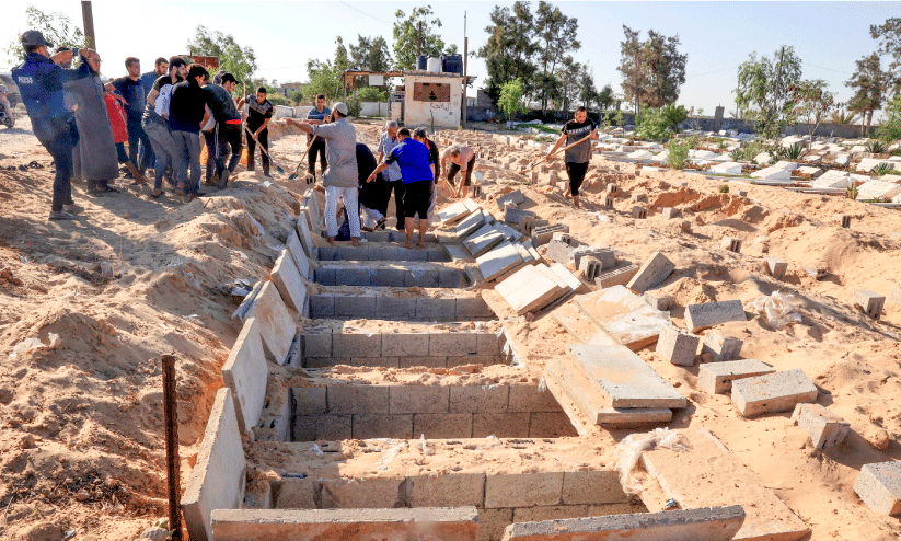 മറമാടാൻ ഇടമില്ലാതെ ഗസ്സയിൽ കൂട്ട ഖബറിടങ്ങൾ ഒരുക്കുന്നു