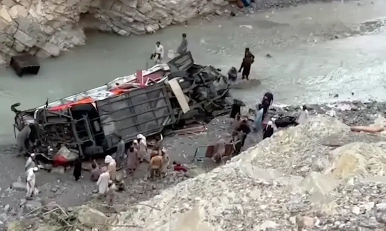 ബലൂചിസ്താൻ പ്രവിശ്യയിൽ മലനിരകളിലൂടെ പോകുന്നതിനിടെയായിരുന്നു ദുരന്തം. കനത്ത മഴയും അമിതവേഗവും ദുരന്തത്തിന് ആക്കംകൂട്ടിയതായി രക്ഷാപ്രവർത്തകർ പറഞ്ഞു.സമാന ദുരന്തങ്ങൾ തുടർക്കഥയായ പാകിസ്താനിൽ കഴിഞ്ഞ മാസമുണ്ടായ ബസപകടത്തിൽ 22 പേർ കൊല്ലപ്പെട്ടിരുന്നു.