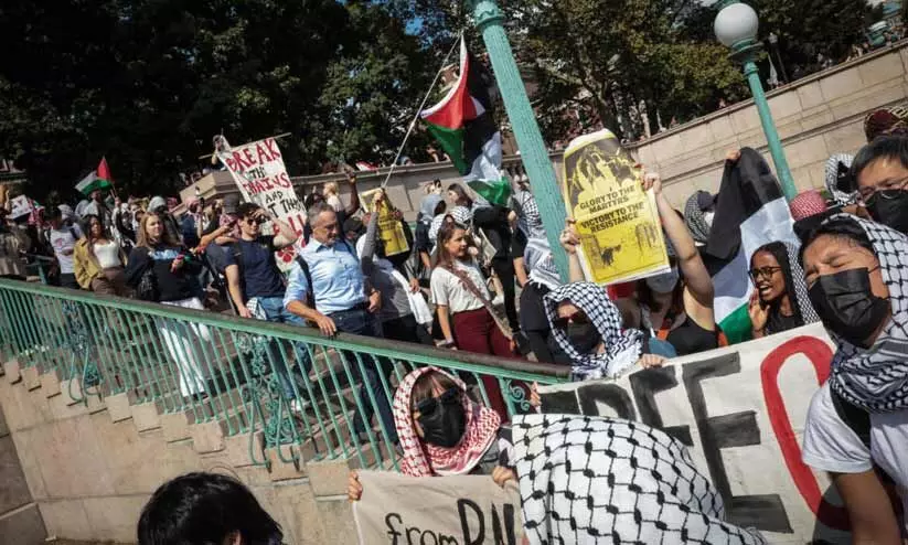 ട്രംപിനെതിരെ പ്രതിഷേധം പടരുന്നു; ന്യൂയോർക്ക് സിറ്റിയിൽ ഫലസ്തീൻ അനുകൂല റാലി, നിരവധി പേരെ അറസ്റ്റ് ചെയ്തു