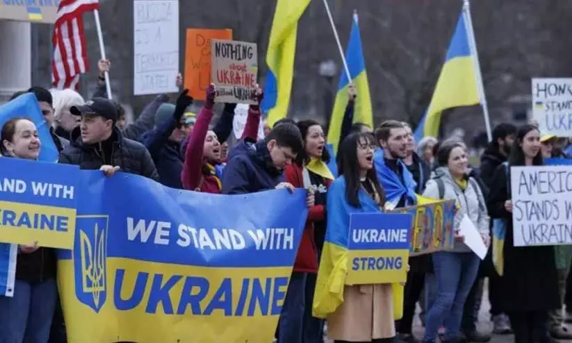 ട്രംപ്-സെലൻസ്കി ഏറ്റുമുട്ടലിന് പിന്നാലെ യു.എസിലുടനീളം യുക്രെയ്ൻ അനുകൂല പ്രകടനം