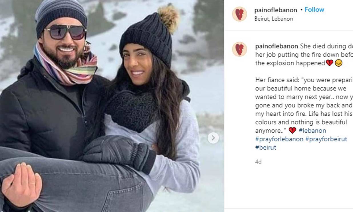 'എെൻറ മനോഹരിയായ വധു. 2021 ജൂൺ ആറിന് ഞങ്ങൾ വിവാഹിതരാകാനിരുന്നതായിരുന്നു. പകരം നാളെയത് നടക്കും'- ലെബനീസ് സ്റ്റേറ്റ് സെക്യൂരിറ്റിയിൽ ഓഫിസറായ കരാൻ, സഹറിെൻറ മരണത്തിന് പിന്നാലെ ഓൺലൈൻ സന്ദേശത്തിൽ എഴുതി. പാരാമെഡിക് യൂനിഫോമിൽ സഹർ പുഞ്ചിരിച്ച് നിൽക്കുന്ന പടത്തിനൊപ്പമായിരുന്നു സന്ദേശം.