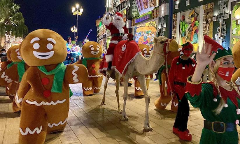 ക്രിസ്മസിനെ വരവേൽക്കാൻ അണിഞ്ഞൊരുങ്ങിയ ഗ്ലോബൽ വില്ലേജിലാണ് നരച്ചമുടിയും താടിയുമായി ചുവന്ന കുപ്പായവും കൂർമ്പൻ തൊപ്പിയുമണിഞ്ഞ് പരിവാരങ്ങൾക്കൊപ്പം സാന്ത എത്തിയത്. കോവിഡ് പരിഭ്രാന്തിയിൽ നിന്ന് മെല്ലെ കരകയറി വരുന്ന ദുബൈയിലെ ഗ്ലോബൽ വില്ലേജിൽ എത്തിയവർക്ക് ഒട്ടകപ്പുറത്തെ സാന്താക്ലോസ് ആശ്വാസക്കാഴ്ചയായി. ജനിതകമാറ്റം സംഭവിച്ച കൊറോണ വൈറസിന്റെ വ്യാപനം വർധിച്ചുവരുന്ന സാഹചര്യത്തിൽ യൂറോപ്യൻ രാജ്യങ്ങളടക്കം ലോകത്തിന്റെ വിവിധ ഭാഗങ്ങളിൽ ക്രിസ്മസ് ആഘോഷങ്ങൾക്ക് മങ്ങലേറ്റിരിക്കുകയാണ്. സെന്റ് പീറ്റേഴ്സ് ബസലിക്കയിലെ ബാൽക്കണിയിൽനിന്ന് ക്രിസ്മസ് സന്ദേശം നൽകുന്ന പതിവ് തെറ്റിച്ച് ഇത്തവണ വത്തിക്കാനിലെ ആസ്ഥാനത്ത് ഇരുന്നായിരിക്കും പോപ് ഫ്രാൻസിസ് ക്രിസ്മസ് സന്ദേശം നൽകുകയെന്ന് വത്തിക്കാൻ അറിയിച്ചിട്ടുണ്ട്.