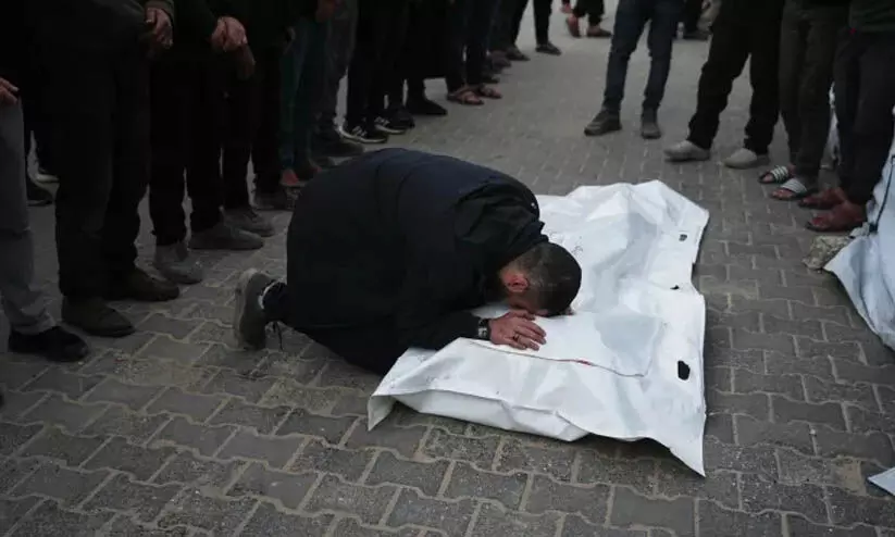 text_fieldsഗസ്സ സിറ്റി: ‘അവളെ തിരയാൻ ഞങ്ങൾ 15 മിനിറ്റിലധികം ചെലവഴിച്ചു. അവളുടെ കാലുകൾ ഒഴികെ മറ്റൊന്നും കാണാനായില്ല. അത് കണ്ടെത്തുന്നതുവരെ കുഴിച്ചുകൊണ്ടിരിക്കുകയാണ്. എവിടെയാണ് വെടിനിർത്തൽ? ഞങ്ങൾ സാധാരണക്കാരാണ്, ഞങ്ങൾ മരിക്കുകയാണ്’ -ദേർ അൽ ബലായിലെ വീടിനു നേരെ ഇസ്രായേൽ നടത്തിയ ആക്രമണത്തിൽ കൊല്ലപ്പെട്ട ഒരു കൗമാരക്കാരിയുടെ പിതാവ് മൃതദേഹം കണ്ടെത്തുന്നതിനായി ആഞ്ഞു കുഴിക്കുന്നതിടെ വിവരിച്ചു. ആക്രമണം നടക്കുമ്പോൾ തന്റെ മകൾ ഒരു മുറിയിൽ ഇരുന്നു പഠിക്കുകയായിരുന്നുവെന്ന് ഫലസ്തീൻകാരനായ റാഫത്ത് അബു സമ്ര പറയുന്നു.