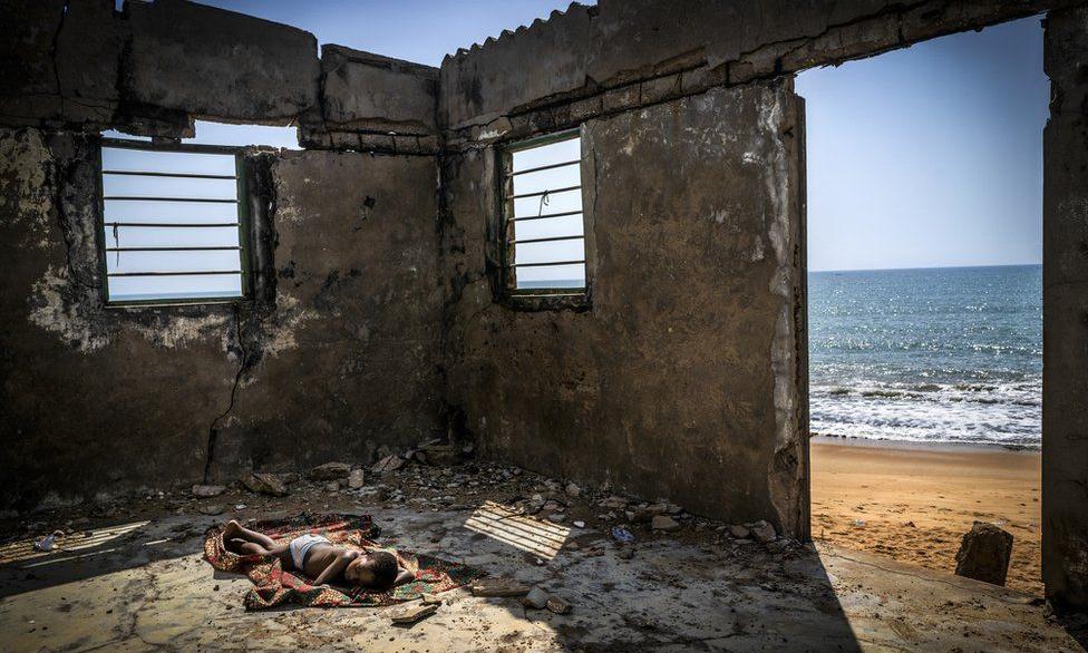 വരാനിരിക്കുന്ന മാറ്റങ്ങളുടെ ചിത്രീകരണം എന്ന നിലയിൽ, കെനിയയിലെ നെയ്റോബിയിൽ പ്ലാസ്റ്റിക് കവറിൽ നട്ടു വളർത്തിയ ചെടിയിൽ നിന്നും ശ്വാസവായു തേടുന്ന ആൺകുട്ടി. കെവിൻ ഓചിയങ് ഒയാനോയുടെ ചിത്രം.