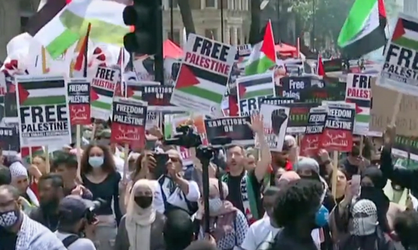 ഡൗണിങ് സ്ട്രീറ്റിലെ ബ്രീട്ടീഷ് പ്രധാനമന്ത്രി ബോറിസ് ജോണ്സന്റെ ഔദ്യോഗിക വസതിയിലേക്കായിരുന്നു മാര്ച്ച്. ഫലസ്തീന് അനുകൂല പ്ലക്കാര്ഡുകളുമായാണ് പ്രതിഷേധക്കാര് അണിനിരന്നത്.