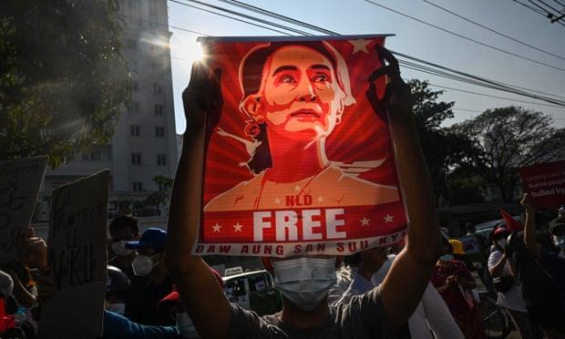 ജനാധിപത്യ സർക്കാറിനെ പുറത്താക്കി സൈന്യം അധികാരം പിടിച്ചതിനു ശേഷം പ്രതിഷേധവുമായി ജനം തെരുവിലുണ്ട്. 850 പേർ ഇതുവരെ സൈനിക വേട്ടക്കിരയായിരുന്നു.5,000 ഓളം പേർ കസ്റ്റഡിയിലുണ്ട്.