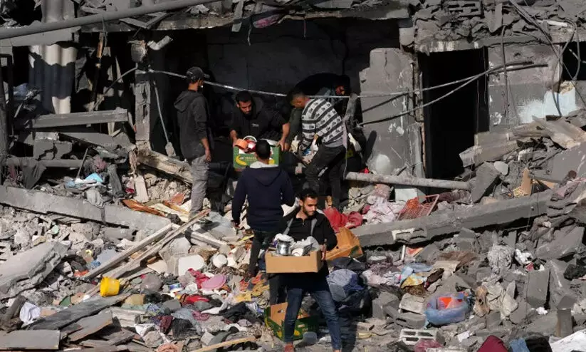 text_fieldsഇസ്രായേൽ ആക്രമണത്തിൽ റഫയിലെ പാർപ്പിട കെട്ടിടങ്ങൾ തകർന്നപ്പോൾ. 29 പേരാണ് ഇവിടെ കൊല്ലപ്പെട്ടത് (photo: Adel Hana/AP Photo)