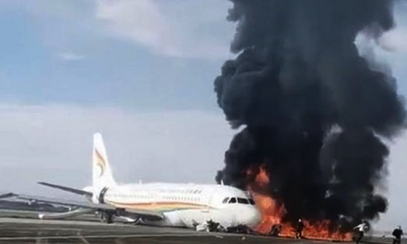 ചൈനയിൽ റൺവേയിൽ നിന്ന് തെന്നിമാറിയ വിമാനത്തിന് തീ പിടിച്ചു, വിഡിയോ