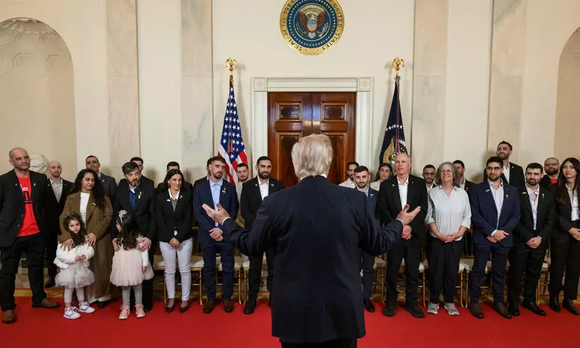 ‘നിങ്ങളെല്ലാവരും ഹീറോകൾ’; മോചിതരായ ഇസ്രായേലി ബന്ദികൾക്ക് വൈറ്റ് ഹൗസിൽ സ്വീകരണമൊരുക്കി ട്രംപ്